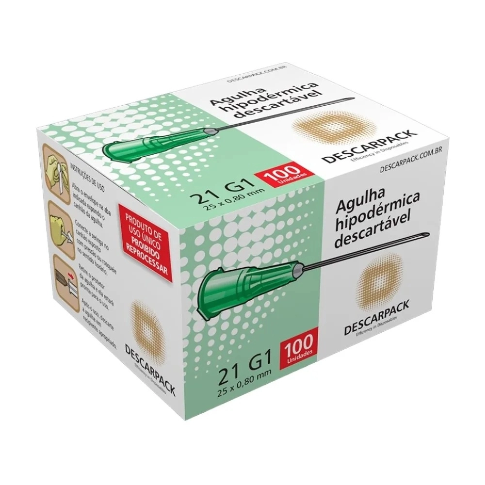Agulha Hipodérmica da Descarpack é indicada para uso médico e hospitalar, a administração de soluções e medicamentos pela via parenteral (subcutânea, intramuscular e endovenosa), além de poder ser utilizada para coleta sanguínea e de outros fluídos corpóreos.