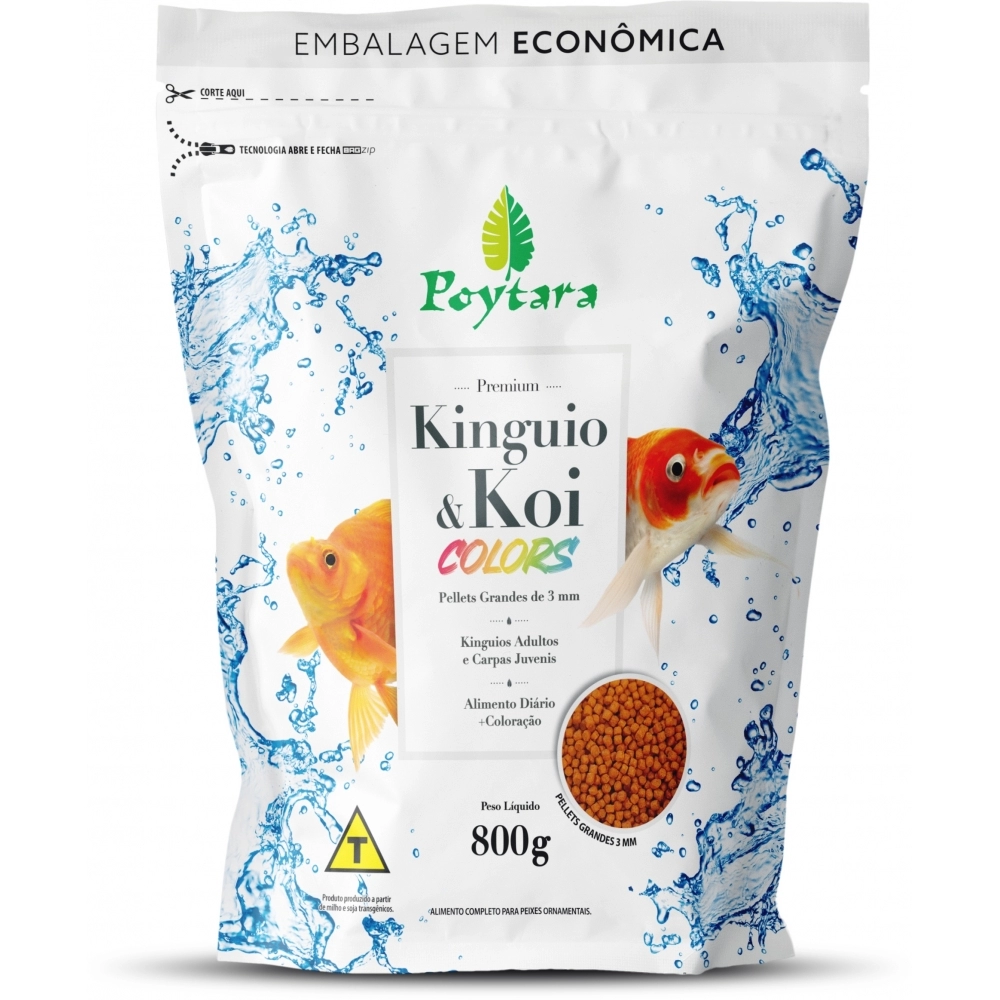 Poytara Kinguio & Koi Colors é um alimento completo em forma de grânulos flutuantes de 3 mm, ideal para alimentação diária de kinguios de grande porte e carpas koi juvenis, fornecendo todos os nutrientes necessários para uma dieta balanceada.