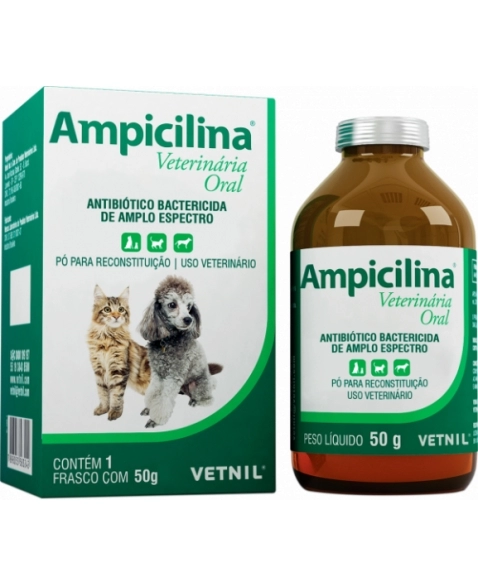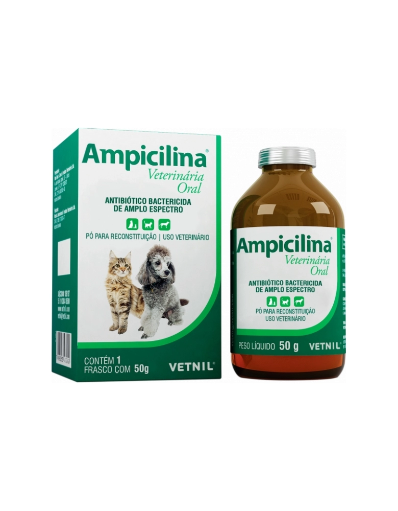 Ampicilina Veterinária Oral é um antibiótico betalactâmico pertencente ao grupo das aminopenicilinas. É indicado para cães e gatos no tratamento de infecções respiratórias, geniturinárias e gastrintestinais, além de outras localizadas ou sistêmicas causadas por: