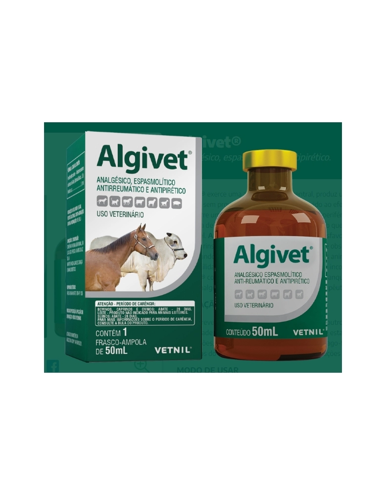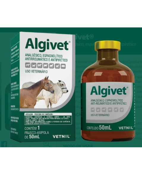 Algivet é indicado para a prevenção e combate às dores nas cólicas e outros estados do tipo espástico de órgãos da cavidade abdominal, artrites agudas e crônicas, estados reumáticos dos músculos e articulações. Neurites e nevralgia. Nas obstruções esôfago-faringeas por corpos estranhos. Nos espasmos do colo uterino durante o parto; nas dilatações agudas do estômago; nas gastrites dos animais domésticos de pequeno porte, para prevenir o vômito.