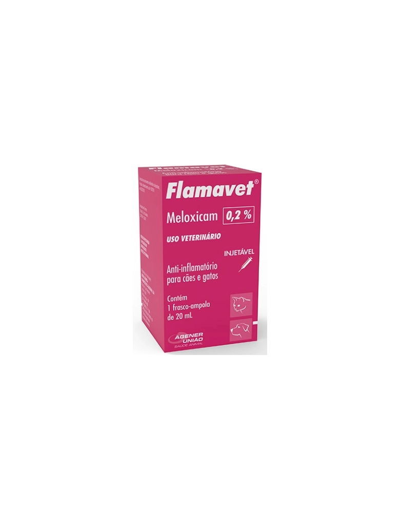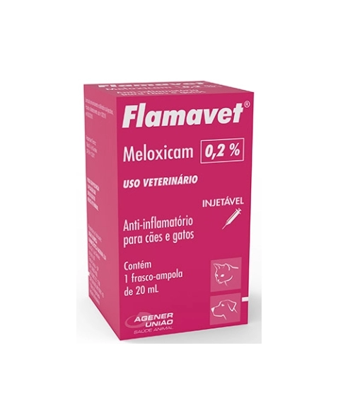 Flamavet® 0,2%: frasco-ampola contendo 20 mL de Meloxicam 0,2%.