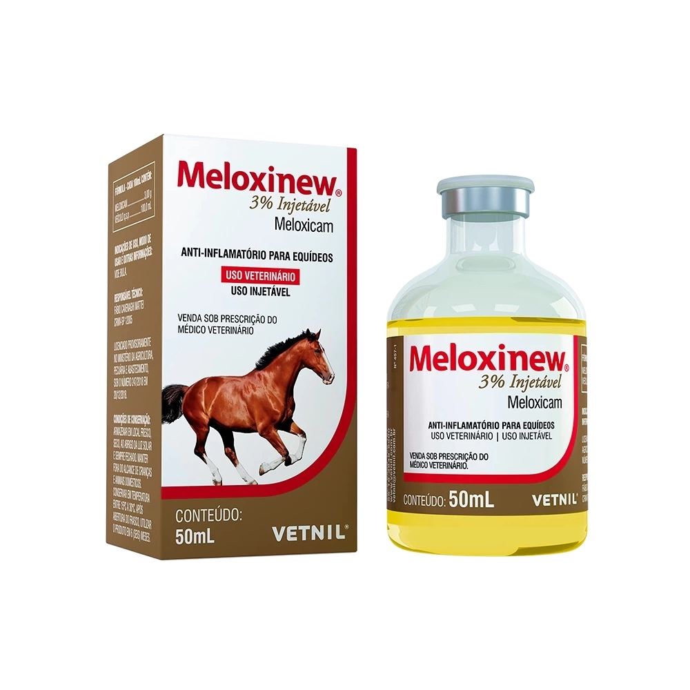 Meloxinew® 3% Injetável é um anti-inflamatório não esteroidal, na concentração de 3%, com atividade preferencial na inibição da cicloxigenase 2 (COX-2). O principal mecanismo de ação do Meloxinew® 3% Injetável é a inibição preferencial da COX-2 e, consequentemente, a capacidade de bloquear a biossíntese das prostaglandinas, mediadores do processo inflamatório. A ação preferencial sobre a COX-2 minimiza os efeitos colaterais sobre a mucosa gástrica dos equídeos, o que confere segurança de uso, associada à eficácia da sua ação anti-inflamatória.