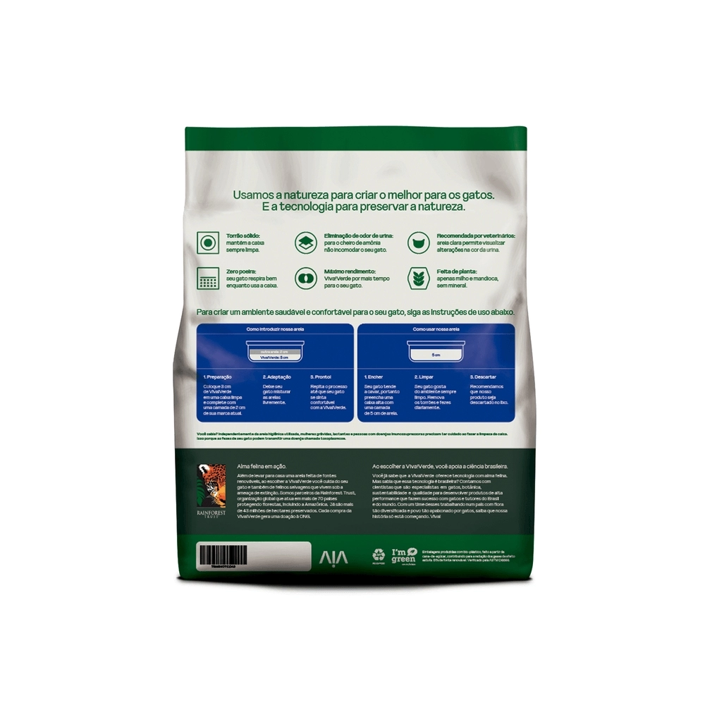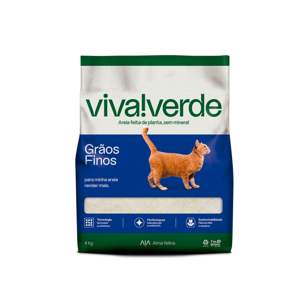 A Viva!Verde Grãos Finos não deixa cheiro e oferece o máximo da eliminação do odor de urina com melhor absorção e rendimento. Feita apenas de milho e mandioca, é livre de poeira e é indicada por médicos veterinários.