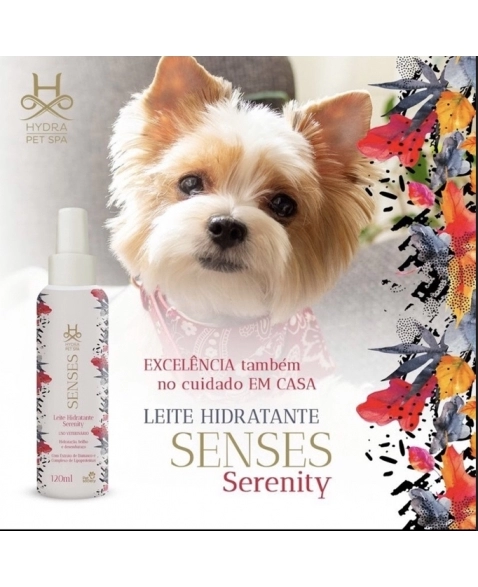 Modo de Uso: Aplique o Hydra Pet Spa Senses Leite Hidratante Serenity por toda a pelagem, espalhe levemente com as mãos e proceda a escovação habitual. Utilizar de 2 a 3 vezes por semana ou conforme a necessidade.