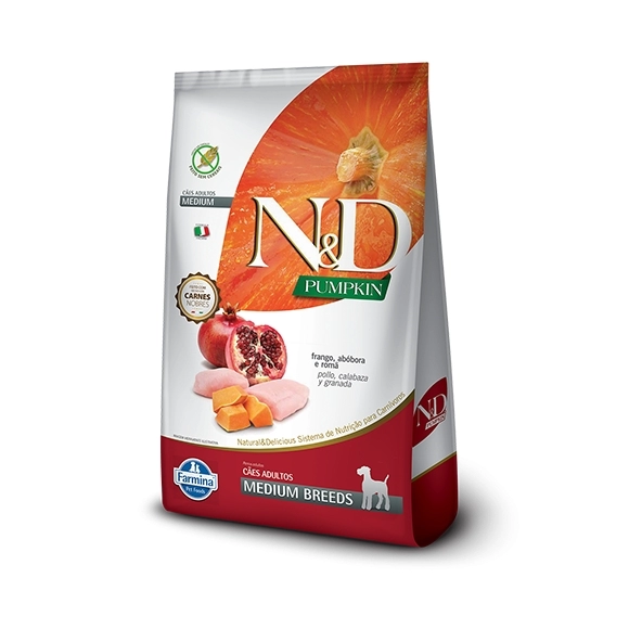 carne de frango (mecanicamente separada), farinha de vísceras de aves (mín. 10%), abóbora desidratada (mín. 2,5%), ovo desidratado, farinha de peixe, amido de batata, amido de mandioca, óleo de peixe, óleo de frango, polpa de beterraba, casca de ervilha, alfafa desidratada, lignocelulose, semente de psyllium, levedura seca de cervejaria, cenoura desidratada, espinafre desidratado, laranja desidratada, maçã desidratada, blueberry em pó, extrato de romã (mín. 0,075%), extrato de chá verde, extrato de aloe vera, cúrcuma em pó, beta caroteno, aditivos prebióticos (FOS e MOS), DL-metionina, taurina, L-carnitina, sulfato de condroitina, sulfato de glicosamina, aditivos adsorventes (extrato de yucca e zeolita), hidrolisado de fígado de frango e suíno, vitaminas (A, D3, E, B1, B2, B6, B12, C, biotina, niacina, ácido pantotênico, ácido fólico, cloreto de colina), cloreto de potássio, ferro aminoácido quelato, cobre aminoácido quelato, zinco aminoácido quelato, manganês aminoácido quelato, proteinato de selênio, iodato de cálcio, propionato de cálcio, concentrado de tocoferóis.