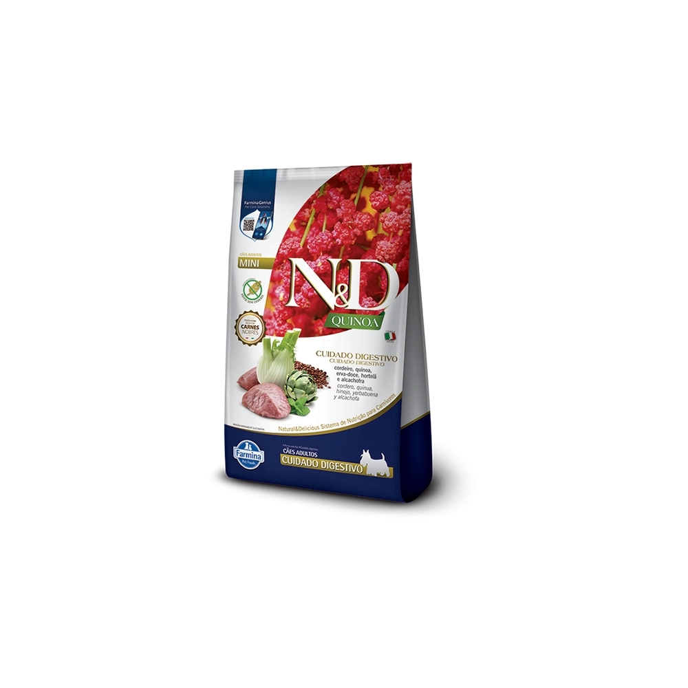 carne de ovino (cordeiro), farinha de carne e ossos de ovino (mín. 3%), farinha de vísceras de aves, ovo em pó, grão de quinoa (mín. 5%), amido de batata, amido de mandioca, óleo de frango, óleo de peixe, polpa de beterraba, semente de psyllium, levedura seca de cervejaria, erva-doce desidratada (mín. 0,15%), hortelã desidratada (mín. 0,15%), alcachofra desidratada (mín. 0,15%), extrato de chá verde, extrato de aloe vera, beta caroteno, aditivos prebióticos (FOS e MOS), DL-metionina, taurina, L-carnitina, sulfato de condroitina, sulfato de glicosamina, aditivos adsorventes (extrato de yucca e zeolita), hidrolisado de fígado de aves e suínos, vitaminas (A, D3, E, B1, B2, B5, B6, B12, C, biotina, niacina, ácido fólico, cloreto de colina), cloreto de potássio, carbonato de cálcio, fosfato bicálcico, ferro aminoácido quelato, cobre aminoácido quelato, zinco aminoácido quelato, manganês aminoácido quelato, proteinato de selênio, iodato de cálcio, propionato de cálcio, mono e diglicerídeos de ácidos graxos, concentrado de tocoferóis.