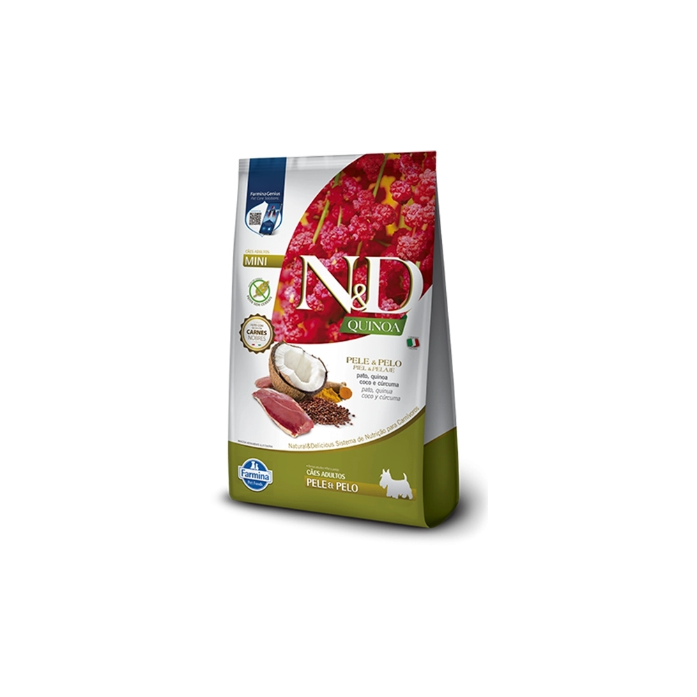 carne de pato (mecanicamente separada), farinha de vísceras de aves (pato e frango) (mín. 10%), grão de quinoa (mín. 5%), amido de batata, amido de mandioca, óleo de frango, óleo de peixe, celulose em pó, semente de psyllium, semente de linhaça, levedura seca de cervejaria, coco desidratado (mín. 0,15%), cúrcuma em pó (mín. 0,15%), extrato de chá verde, extrato de aloe vera, beta caroteno, aditivos prebióticos (FOS e MOS), DL-metionina, taurina, L-carnitina, sulfato de condroitina, sulfato de glicosamina, aditivo adsorvente (zeolita), hidrolisado de fígado de aves e suínos, vitaminas (A, D3, E, B1, B2, B5, B6, B12, C, biotina, niacina, ácido fólico, cloreto de colina), cloreto de potássio, carbonato de cálcio, fosfato bicálcico, sulfato de cálcio dihidratado, ferro aminoácido quelato, cobre aminoácido quelato, zinco aminoácido quelato, manganês aminoácido quelato, proteinato de selênio, iodato de cálcio, propionato de cálcio, mono e diglicerídeos de ácidos graxos, concentrado de tocoferóis.