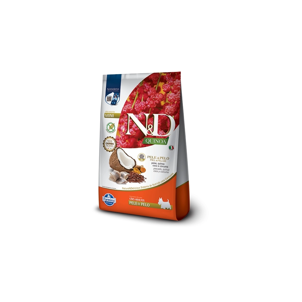 carne de peixe (mecanicamente separada), farinha de peixe (mín. 15%), grão de quinoa (mín. 5%), amido de batata, amido de mandioca, óleo de frango, óleo de peixe, semente de psyllium, semente de linhaça, levedura seca de cervejaria, coco desidratado (mín. 0,15%), cúrcuma em pó (mín. 0,15%), extrato de chá verde, extrato de aloe vera, beta caroteno, aditivos prebióticos (FOS e MOS), DL-metionina, taurina, L-carnitina, sulfato de condroitina, sulfato de glicosamina, aditivo adsorvente (zeolita), hidrolisado de peixe, vitaminas (A, D3, E, B1, B2, B5, B6, B12, C, biotina, niacina, ácido fólico, cloreto de colina), cloreto de potássio, carbonato de cálcio, fosfato bicálcico, ferro aminoácido quelato, cobre aminoácido quelato, zinco aminoácido quelato, manganês aminoácido quelato, proteinato de selênio, iodato de cálcio, propionato de cálcio, concentrado de tocoferóis.