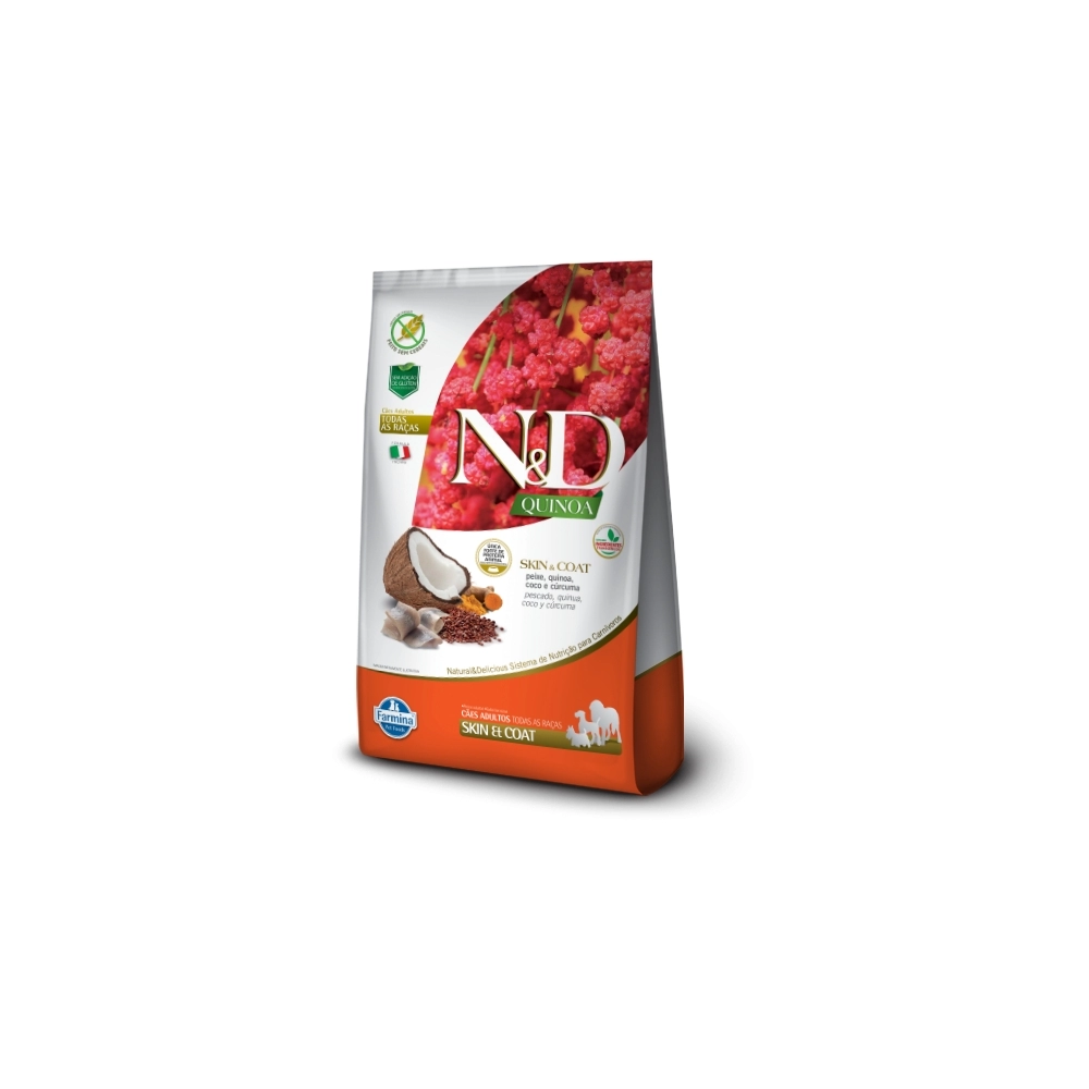 carne de peixe (carne mecanicamente separada), farinha de peixe (mín. 15%), quinoa (mín. 5%), amido de batata, amido de mandioca, óleo de frango, óleo de peixe, semente de psyllium, semente de linhaça, levedura seca de cervejaria, coco desidratado (mín. 0,15%), cúrcuma em pó (mín. 0,15%), extrato de chá verde, extrato de aloe vera, beta caroteno, aditivos prebióticos (FOS e MOS), DL-metionina, taurina, L-carnitina, sulfato de condroitina, sulfato de glicosamina, aditivo adsorvente (zeolita), hidrolisado de peixe, vitaminas (A, D3, E, B1, B2, B6, B12, C, biotina, niacina, ácido pantotênico, ácido fólico, cloreto de colina), cloreto de potássio, carbonato de cálcio, fosfato bicálcico, ferro aminoácido quelato, cobre aminoácido quelato, zinco aminoácido quelato, manganês aminoácido quelato, proteinato de selênio, iodato de cálcio, propionato de cálcio, concentrado de tocoferóis.