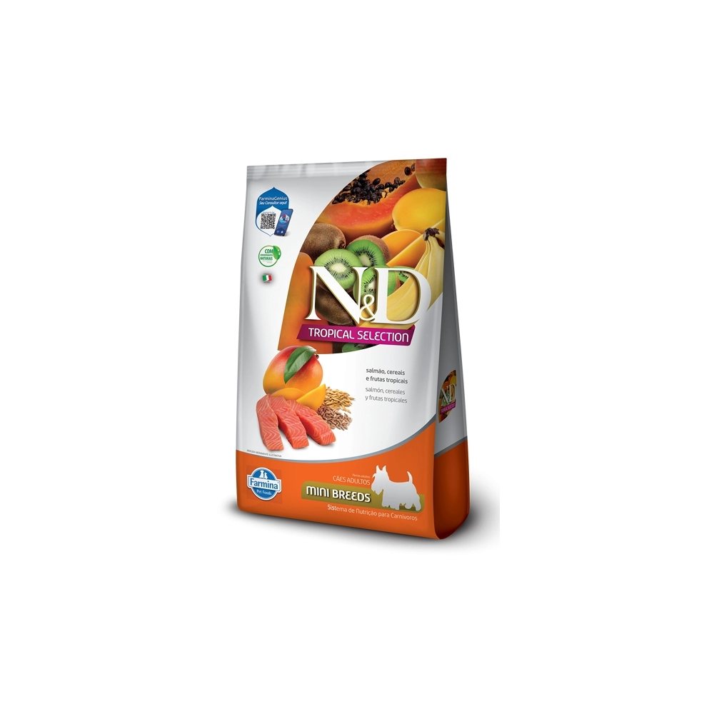 salmão (carne mecanicamente separada de salmão, farinha de salmão – mín. 5%), farinha de peixe, farinha de vísceras de aves, farinha de torresmo, ovo em pó, óleo de frango, óleo de peixe, quirera de arroz, cereais e frutas (aveia, grãos de sorgo, cevada em grãos, banana desidratada, mamão desidratado, kiwi desidratado, manga desidratada – mín. 35%), farelo de trigo, polpa de beterraba, levedura seca de cervejaria, cenoura desidratada, aditivos prebióticos (FOS e MOS), DL-metionina, taurina, L-carnitina, sulfato de condroitina, sulfato de glicosamina, aditivos adsorventes (extrato de yucca e zeolita), hidrolisado de fígado de aves e suínos, vitaminas (A, D3, E, B1, B2, B5, B6, B12, C, biotina, niacina, ácido fólico, cloreto de colina), cloreto de sódio, cloreto de potássio, ferro aminoácido quelato, cobre aminoácido quelato, zinco aminoácido quelato, manganês aminoácido quelato, proteinato de selênio, iodato de cálcio, propionato de cálcio, concentrado de tocoferóis.