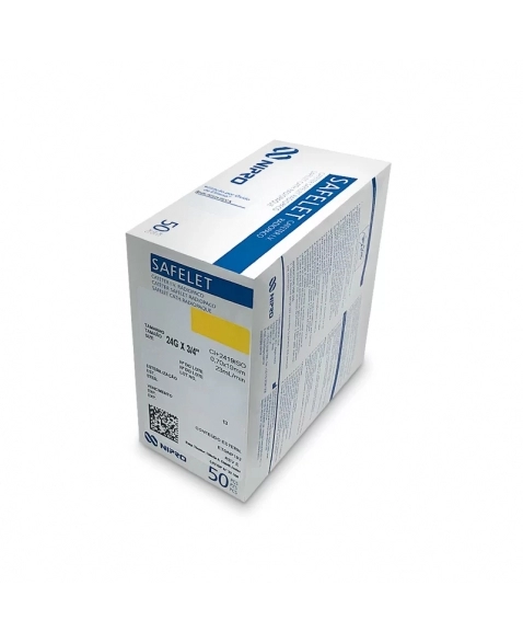 Os Cateteres Intravenosos - Nipro (Safelet) é o único do Brasil que utiliza ethylene-tetrafluoroethylene (ETFE). Esse polímero apresenta bio e hemocompatibilidade, sem sequestro de plaquetas ou formação de fibrinas e agregados plaquetários. Possibilita um acesso venoso seguro para terapia intravenosa nas três categorias: Emergencial, Reposição e Manutenção. Sua embalagem individual tipo contêiner assegura a integridade do material até o momento do uso, garantindo total segurança no manuseio, estocagem e transporte nas condições normais de uso. Esterilizadas por gás óxido de etileno e validade de 5 anos.