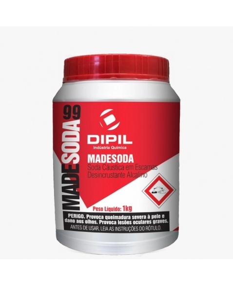 Soda cáustica em escamas indicada para desincrustar e limpar sujeira de gorduras, restos alimentícios e demais sólidos de origem orgânica, além de desentupir ralos, pias, caixas de gordura, vasos sanitários e canos.