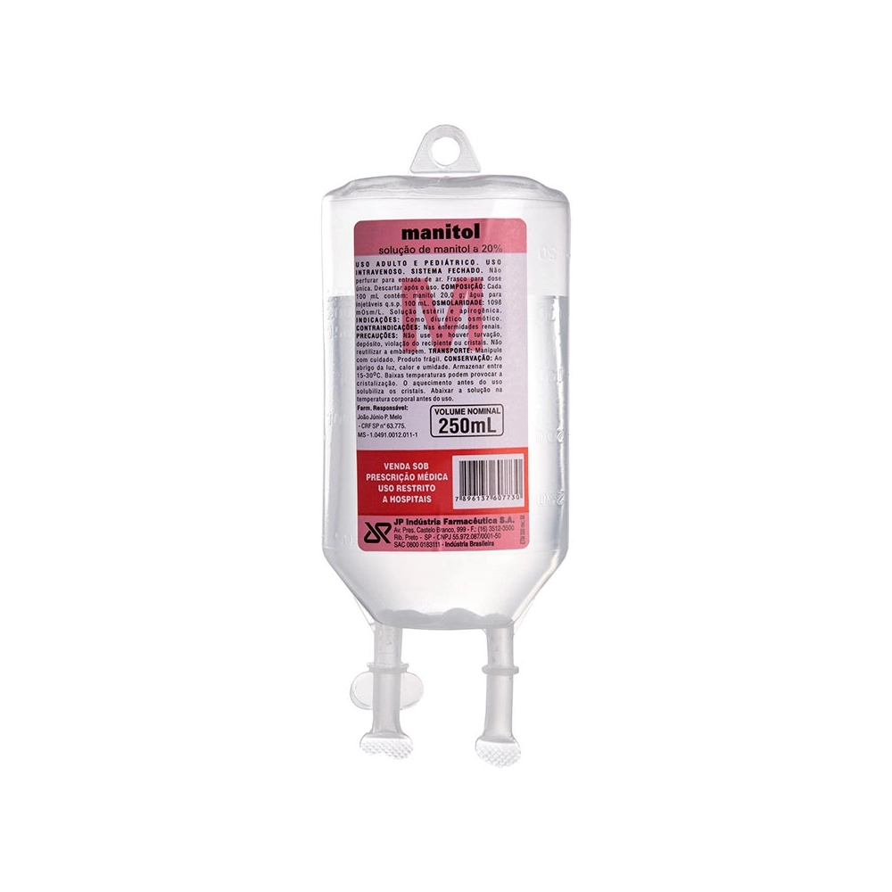 A Solução de Manitol é indicada para a promoção da diurese, na prevenção da falência renal aguda durante cirurgias cardiovaculares e/ou após trauma; redução da pressão intracraniana e tratamento do edema cerebral; redução da pressão intra-ocular elevada quando esta não pode ser reduzida por outros meios; ataque de glaucoma; promoção da excreção urinária de substâncias tóxicas; edema cerebral de origem cardíaca e renal; produção de efeitos diuréticos no tratamento de edemas refratários e ascite.