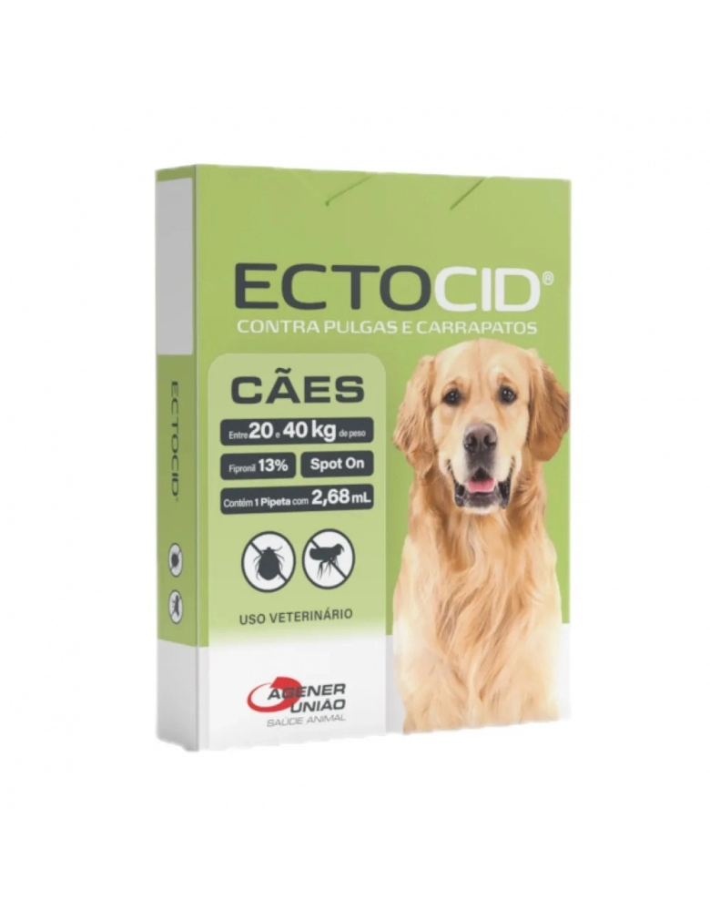 ECTOCID® é indicado no tratamento e controle de infestações causadas por pulgas (Ctenocephalides felis felis) e carrapatos (Rhipicephalus sanguineus) em cães.