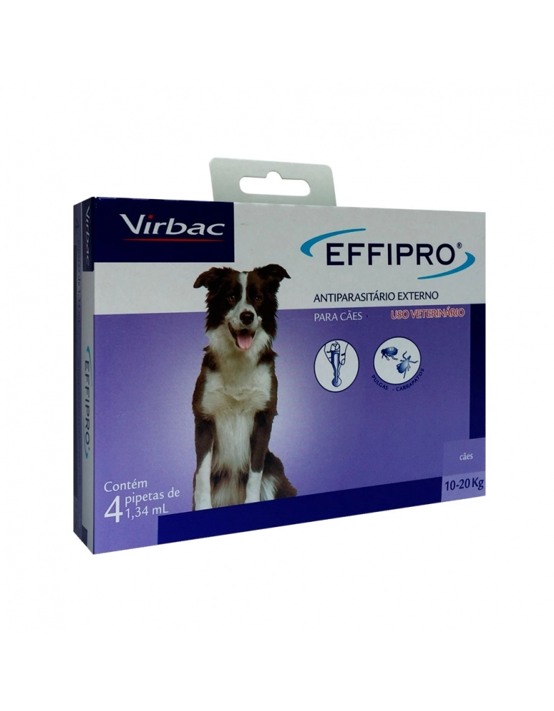 O Antipulgas e Carrapatos Virbac Effipro Cães de 10 até 20 Kg, é um inseticida e carrapaticida a base de fipronil, pertencente à família dos fenilpirazóis. Atua inibindo o complexo do ácido gama-aminobutírico (GABA), bloqueando, deste modo, a transferência pré e pós sináptica dos íons de cloro com os canais de cloro através das membranas celulares. Isto resulta na atividade não controlada do sistema nervoso central e morte dos insetos e carrapatos.