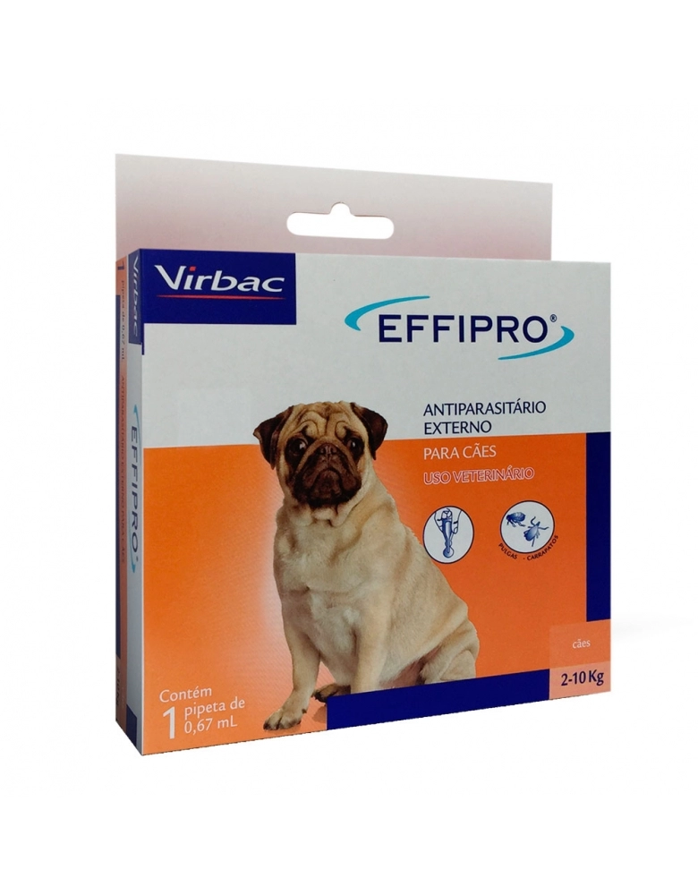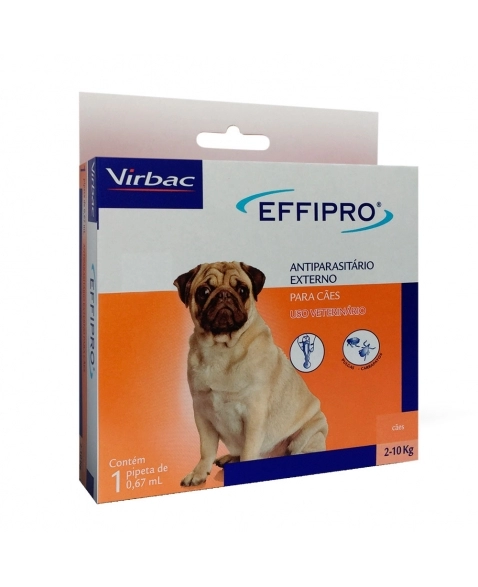 O Antipulgas e Carrapatos Virbac Effipro para Cães de 2 até 10 Kg é um inseticida e carrapaticida a base de fipronil, pertencente à família dos fenilpirazóis. Atua inibindo o complexo do ácido gama-aminobutírico (GABA), bloqueando, deste modo, a transferência pré e pós sináptica dos íons de cloro com os canais de cloro através das membranas celulares. Isto resulta na atividade não controlada do sistema nervoso central e morte dos insetos e carrapatos.