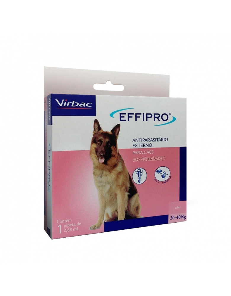 O Antipulgas e Carrapatos Virbac Effipro Cães de 20 até 40 Kg, é um inseticida e carrapaticida a base de fipronil, pertencente à família dos fenilpirazóis. Atua inibindo o complexo do ácido gama-aminobutírico (GABA), bloqueando, deste modo, a transferência pré e pós sináptica dos íons de cloro com os canais de cloro através das membranas celulares. Isto resulta na atividade não controlada do sistema nervoso central e morte dos insetos e carrapatos.