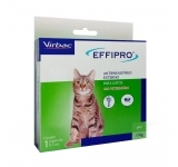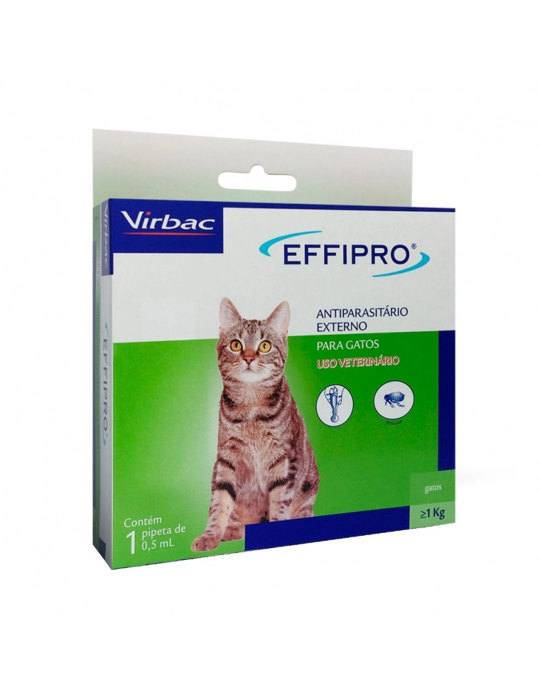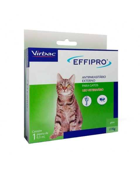 O Antipulgas Virbac Effipro para Gatos com 1 Kg ou Mais é um inseticida e carrapaticida a base de fipronil, pertencente à família dos fenilpirazóis. Atua inibindo o complexo do ácido gama-aminobutírico (GABA), bloqueando, deste modo, a transferência pré e pós sináptica dos íons de cloro com os canais de cloro através das membranas celulares. Isto resulta na atividade não controlada do sistema nervoso central e morte dos insetos e carrapatos.