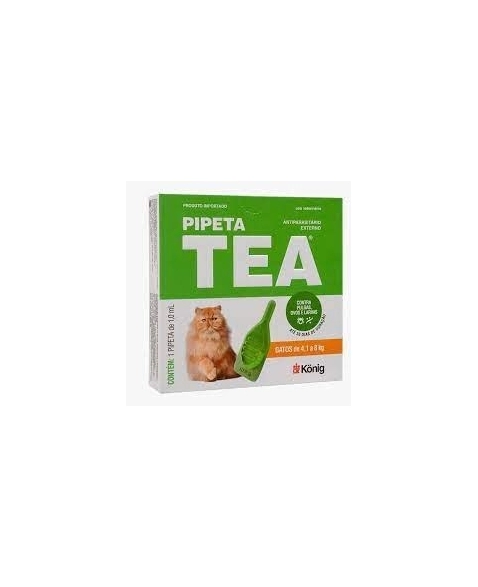 Pipeta Tea é uma solução pulguicida composta por ativos extremamente seguros e aplicados por via tópica em gatos, variando a dose pelo peso indicado em cada embalagem.