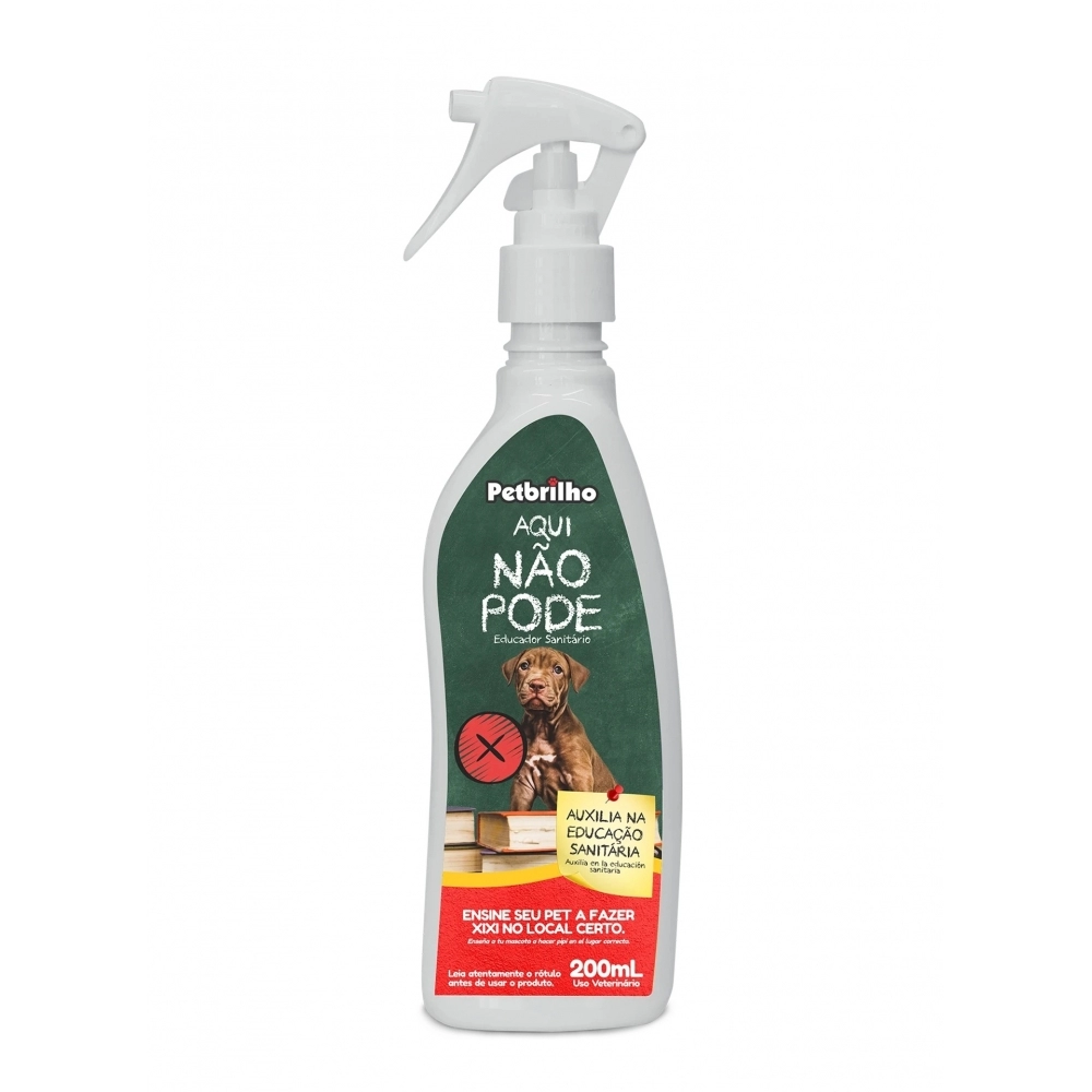 As vezes seu pet faz xixi em lugares errados e os ensinamentos e treinamentos não são suficientes para que ele aprenda. Assim, a Petbrilho desenvolveu o Educador Xixi Aqui Não Pode, que é utilizado como educador e adestrador, o qual auxilia na educação sanitária e comportamental. O educador Aqui Não Pode é fundamental para determinar o local que não é para seu doguinho fazer as necessidades, sua fórmula contém um repelente natural que afasta o seu animalzinho de lugares indesejados. Apenas repele os animais, sem prejudicá-los.