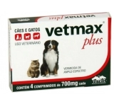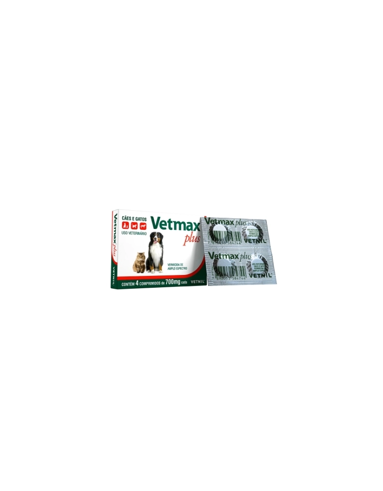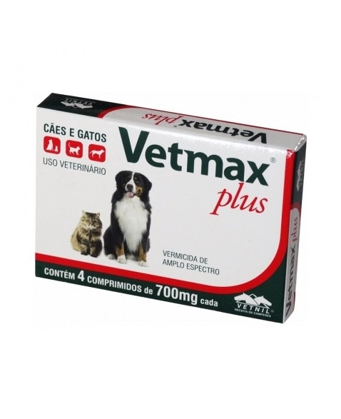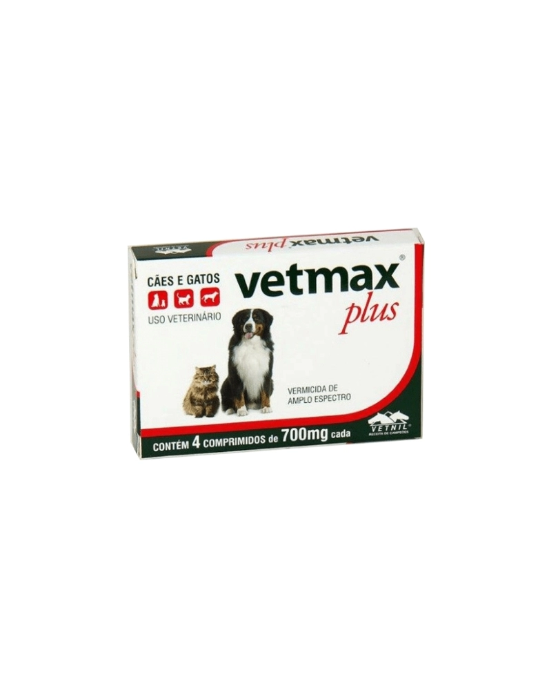 Vetmax Plus é um vermífugo de amplo espectro indicado no combate às infestações por nematódeos (vermes redondos) e cestódeos (vermes chatos) gastrintestinais de cães e gatos. Espectro de ação inclui: Ancylostoma spp., Toxocara spp., Trichuris spp., Dipylidium caninum e Giardia spp.