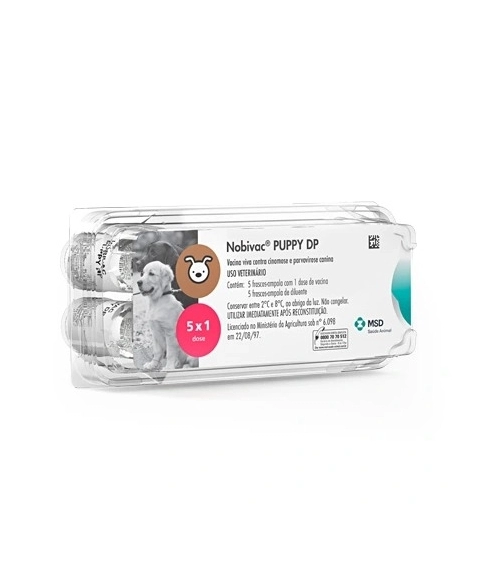 Geralmente isto ocorre entre 6 e 9 semanas de idade. Recentes pesquisas, no entanto, demonstram que alguns filhotes apresentam níveis baixos de anticorpos maternos a partir de 4 semanas de idade. O programa de vacinação normal com vacinas de alto título e baixa dosagem, começa com 6 semanas de idade e termina com 12 semanas de idade. Em alguns casos especiais é necessário proteger filhotes a partir de 4 semanas de idade, por exemplo animais com baixos títulos de anticorpos maternos, animais expostos a alto risco e estresse (animais em exposição, lojas, separação precoce da mãe, etc.), raças mais sensíveis a parvovirose (Rottweiler, Doberman, Labrador) e animais criados em locais onde já ocorreram casos de parvovirose ou cinomose. Nestes casos a vacina Nobivac® Puppy DP apresenta resposta precoce graças à cepa de alto título e baixa passage de parvovirose e o alto título presente da cepa de cinomose.