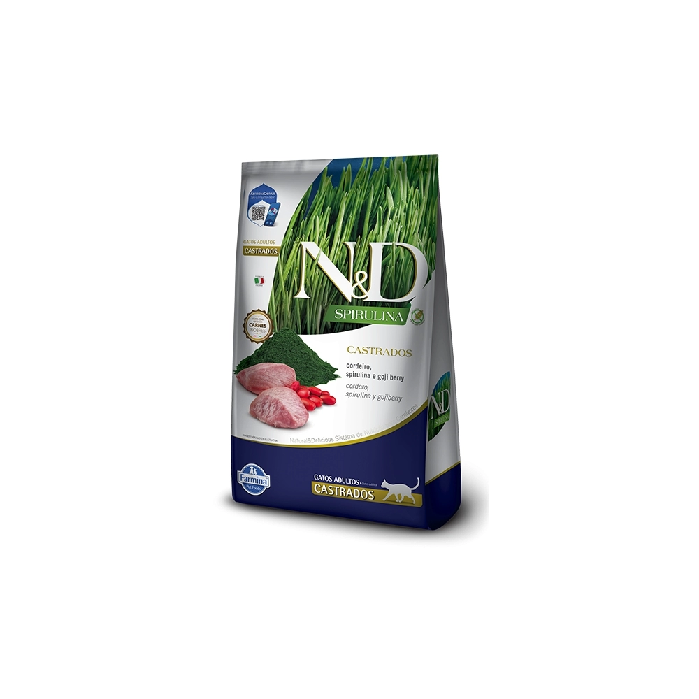 cordeiro (carne de ovino, farinha de carne e ossos de ovino – mín. 3%), farinha de vísceras de aves, ovo em pó, farinha de peixe, farinha de torresmo, amido de batata, amido de mandioca, óleo de peixe, óleo de frango, polpa de beterraba, casca de ervilha, semente de linhaça, alfafa desidratada, celulose em pó, semente de psyllium, levedura seca de cervejaria, biomassa de microalgas desidratada (Spirulina spp.) (mín. 0,5%), goji berry (mín. 0,075%), cenoura desidratada, espinafre desidratado, extrato de aloe vera, cúrcuma em pó, beta caroteno, aditivos prebióticos (FOS e MOS), DL-metionina, taurina, L-carnitina, sulfato de condroitina, sulfato de glicosamina, aditivos adsorventes (extrato de yucca e zeolita), hidrolisado de fígado de aves e suínos, vitaminas (A, D3, E, B1, B2, B5, B6, B12, C, biotina, niacina, ácido fólico, cloreto de colina), cloreto de amônio, cloreto de sódio, cloreto de potássio, ferro aminoácido quelato, cobre aminoácido quelato, zinco aminoácido quelato, manganês aminoácido quelato, proteinato de selênio, iodato de cálcio, propionato de cálcio, concentrado de tocoferóis.