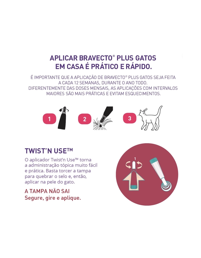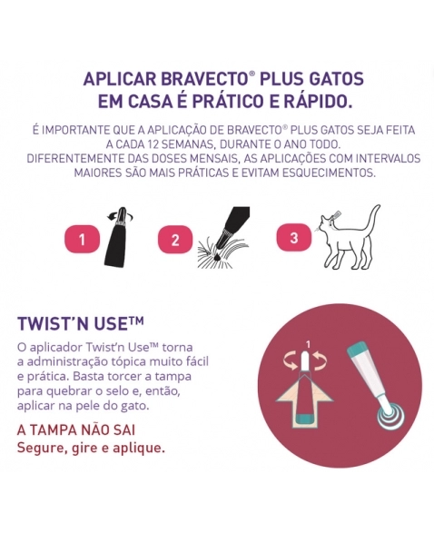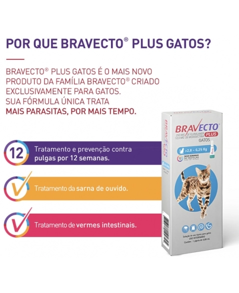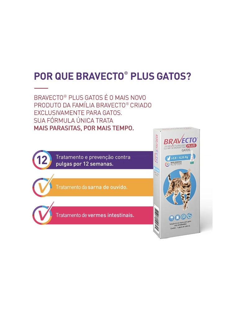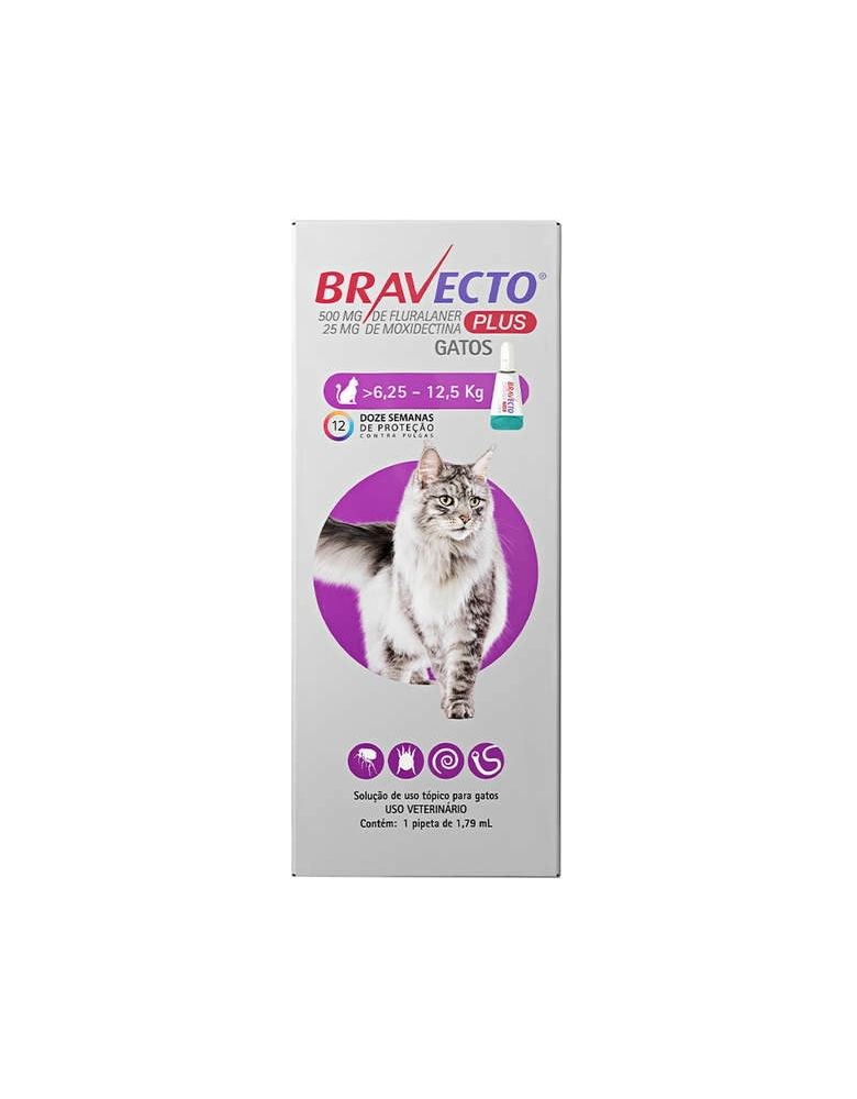 A segurança foi demonstrada em filhotes com 11-13 semanas de idade e pesando 1,2-1,5 Kg, em overdoses de até 5 vezes a máxima dose recomendada por três tratamentos com intervalos menores (8 semanas) que o recomendado. O tratamento reduz o risco de transmissão de doenças causadas por pulgas devido ao rápido início da ação inseticida. Os parasitos precisam iniciar a alimentação no gato para serem expostos ao fluralaner, portanto o risco de transmissão de doenças causadas por pulgas não pode ser excluída em condições desfavoráveis.