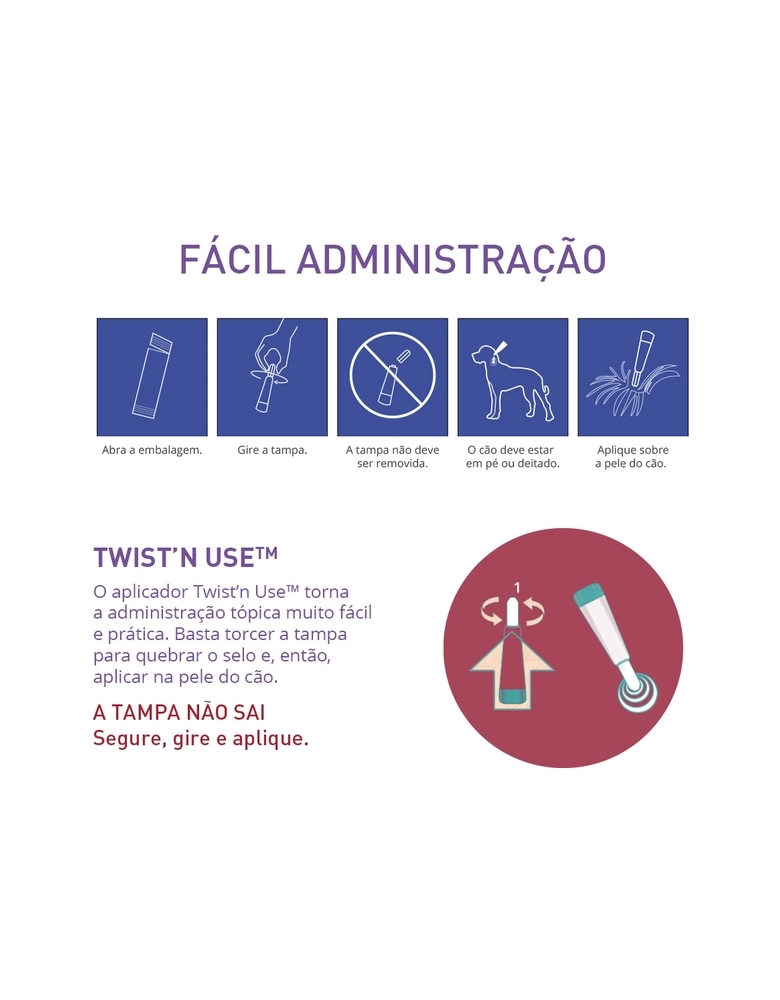 - Não banhar ou permitir que o cão fique imerso em água ou nade em cursos de água nos três primeiros dias após a administração