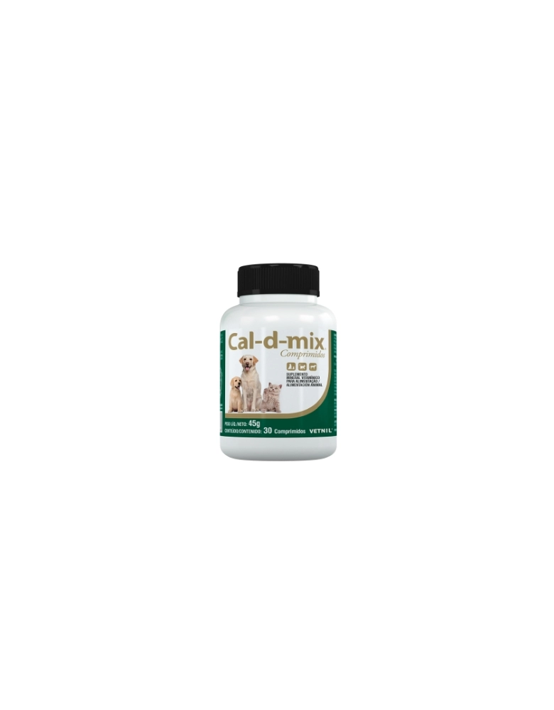 Cal-d-mix comprimido é um suplemento vitamínico e mineral, indicado para cães, gatos e mustelídeos em estado nutricional inadequado. Também indicado na suplementação de Cálcio, outros Minerais e Vitaminas em perfeito equilíbrio.