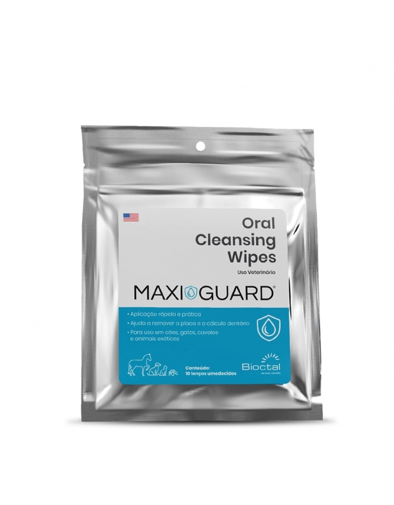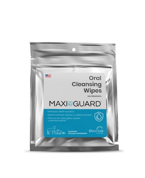 MAXI/GUARD® Oral Cleansing Wipes são lenços umedecidos especialmente desenvolvidos para a higiene oral dos animais.