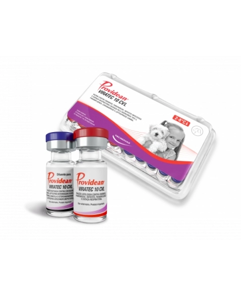 Providean® Viratec DP é uma vacina com alto título viral, indicada para o início da vacinação em filhotes de cães, a partir de 4 semanas de vida como auxiliar na prevenção da Parvovirose e Cinomose.