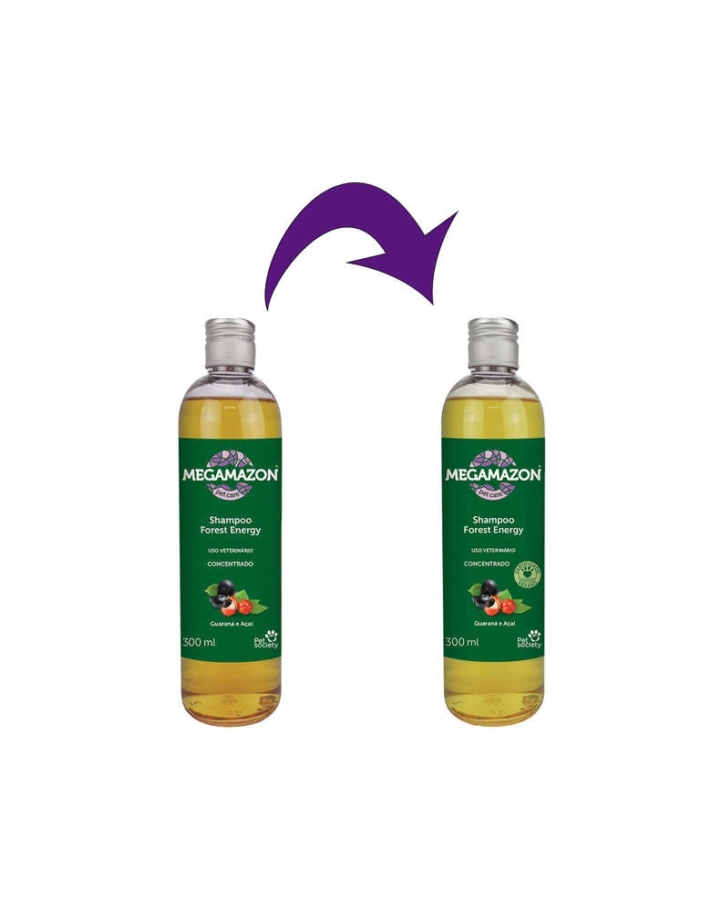 Ativo Megamazon Forest Energy contém ativos especiais de Guaraná e Açaí que fortalecem a pelagem, promovendo sensação de leveza e maleabilidade nos fios. A linha Megamazon possui fórmula concentrada 1:1, é biodegradável, proporciona secagem rápida e tem efeito neutralizador de odores, higienizando com um surpreendente perfume de natureza.