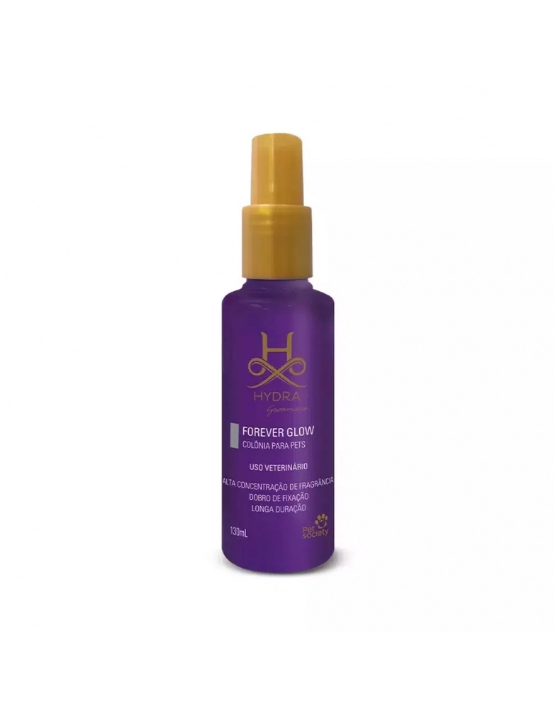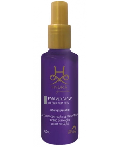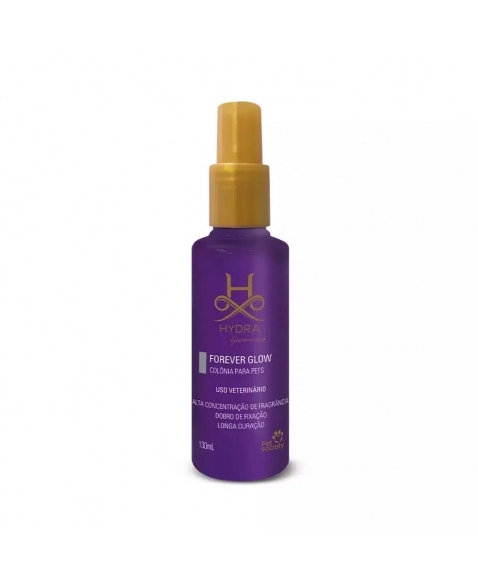 Modo de Uso: Após a secagem, aplicar a Colônia Forever Glow por toda a pelagem, finalizando o banho completo com a linha Hydra.