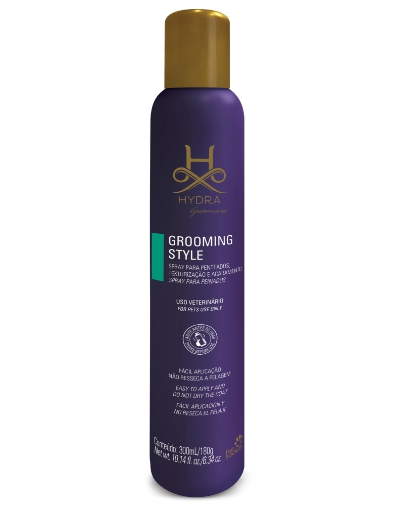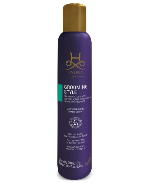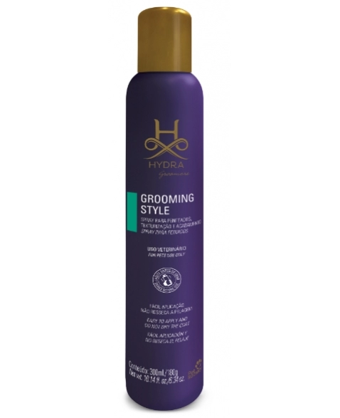 Modo de Uso: Uso tópico. Agite bem antes de usar. Aplique o Hydra Grooming Style na área desejada, mantendo distância de 30 cm da superfície da pelagem. Para remover o produto da pelagem, basta lavá-la normalmente.