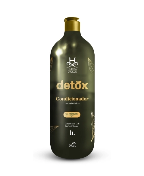 Diluir o Hydra Vegan Detox Condicionador em 4 partes de água, espalhar por toda a pelagem, massageando bem no sentido do crescimento do pelo e enxaguar. Secar a pelagem normalmente com soprador e secador. Finalizar com a Hydra Vegan Detox Colônia.