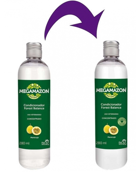 Megamazon Forest Balance contém ativo especial de Maracujá, que possui ação refrescante, hidratante e suavizante para a pele e pelagem do animal. A linha Megamazon possui fórmula concentrada 1:1, é biodegradável, proporciona secagem rápida e tem efeito neutralizador de odores, higienizando com um surpreendente perfume de natureza.