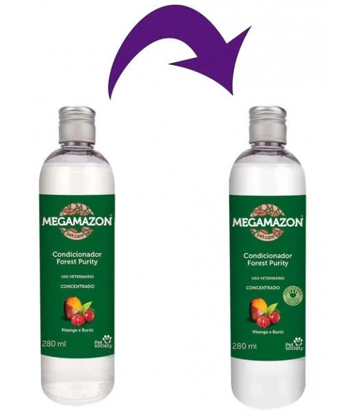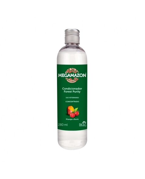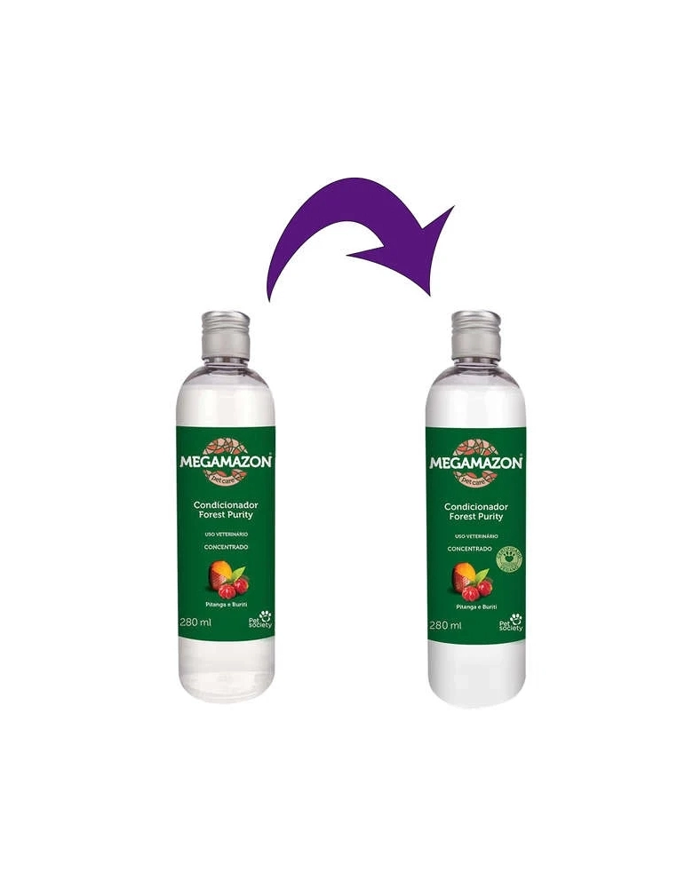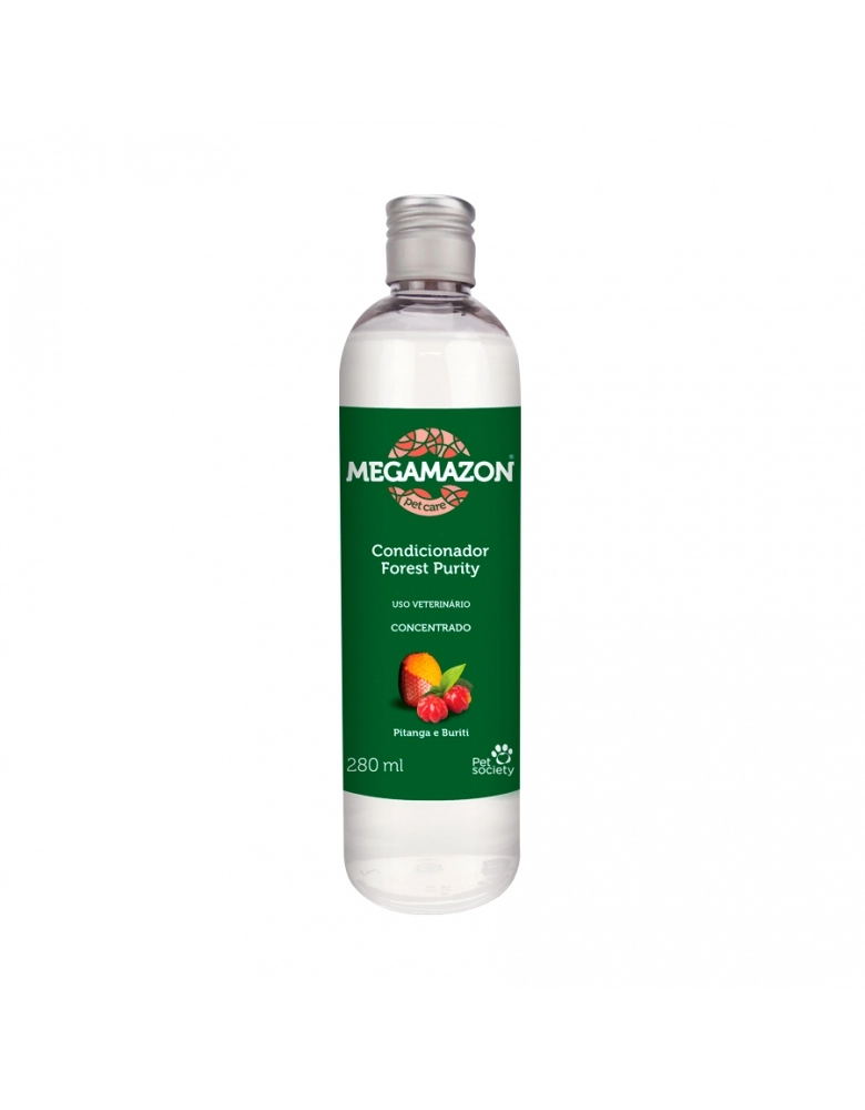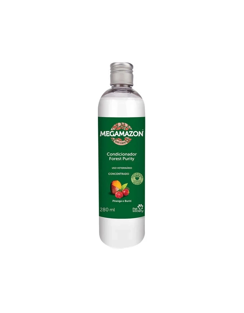 Megamazon Forest Purity contém ativos especiais de Pitanga e Buriti, que nutrem e protegem a pelagem, promovendo brilho intenso. A linha Megamazon possui fórmula concentrada 1:1, é biodegradável, proporciona secagem rápida e tem efeito neutralizador de odores, higienizando com um surpreendente perfume de natureza.