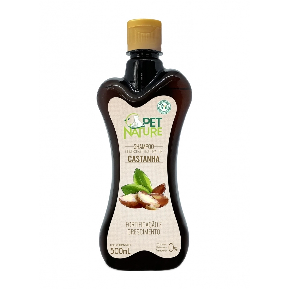 O Shampoo da Linha Pet Nature enriquecida com extratos de Castanha foi desenvolvido para pelos desidratados e danificados. Devido aos seus compostos, eles os deixam macios e com aparência natural, com ação reparadora que estabelece um condicionamento progressivo e perfumado, levando a fortificação e crescimento aos pelos. Com uma fragrância suave, o shampoo é livre de petrolatos e de parabenos.