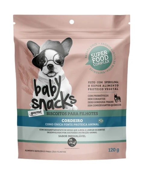 Elaborado por doutores em nutrição animal, o Biscoitos The French Co. Baby Snacks Gourmet Cordeiro para Filhotes é super nutritivo, com sabor inigualável, possui Hexametafosfato de sódio que auxilia na limpeza dos dentes ajudando a prevenir o tártaro. Considerado Super Food Complex, contém ingredientes ricos em vitaminas e nutrientes como a abóbora, ora pro nóbis, batata doce e água de coco, contribuindo para o desenvolvimento saudável do seu pet.