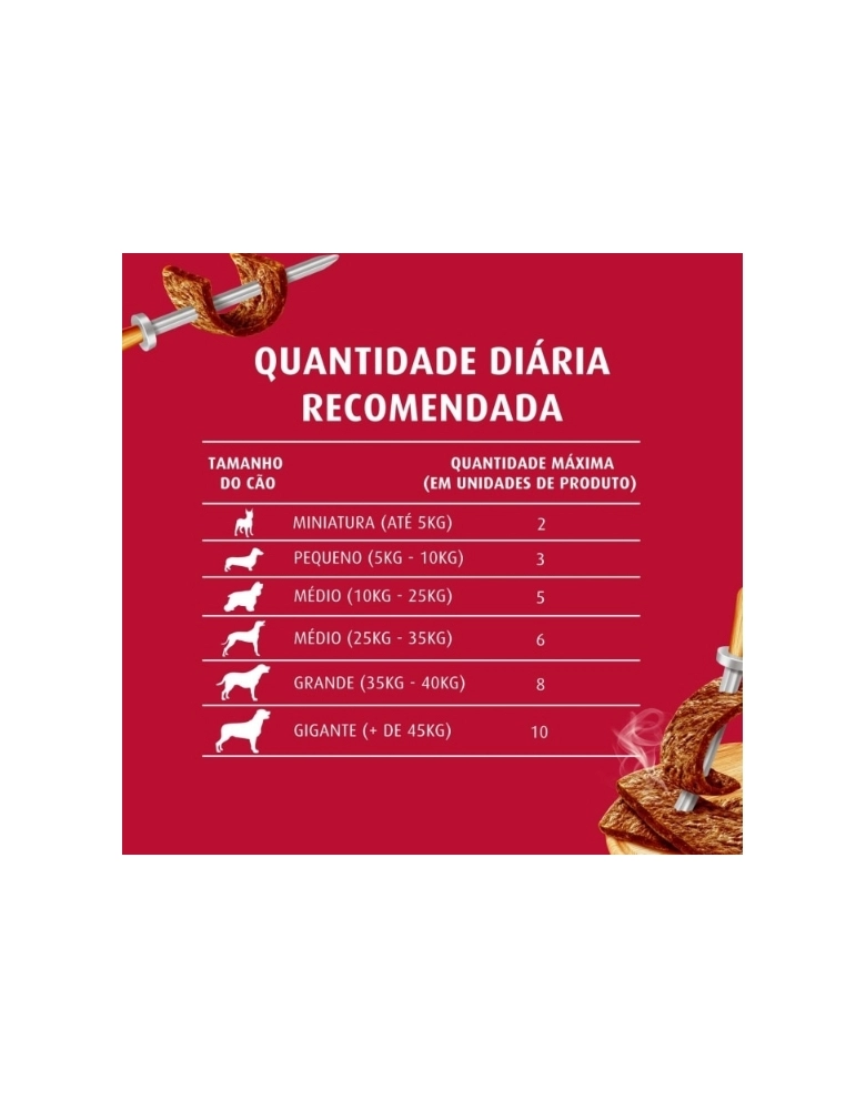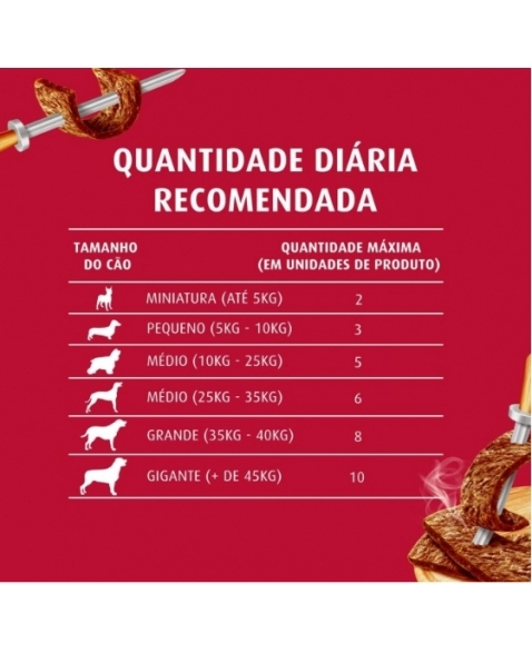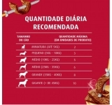 Miniatura (até 5kg) 2 unidades/dia - Pequeno (5kg - 9kg) 3 unidades/dia - Médio (9kg - 22kg) 5 unidades/dia - Médio (22kg - 34kg) 6 unidades/dia - Grande (34kg - 45kg) 8 unidades/dia - Gigante (+ de 45kg) 10 unidades/dia