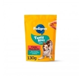 - Petisco Pedigree Tasty Bites para Cães Adultos Sabor Carne Suculenta;