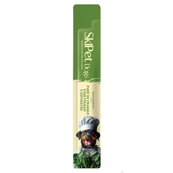 Composição básica: Carne mecanicamente separada de frango (30%), Fígado de frango (5%), Espinafre (1%), Proteína hidrolisada de frango, Óleo de coco, Fécula de mandioca modificada, Carragena, Goma xantana, Goma guar.