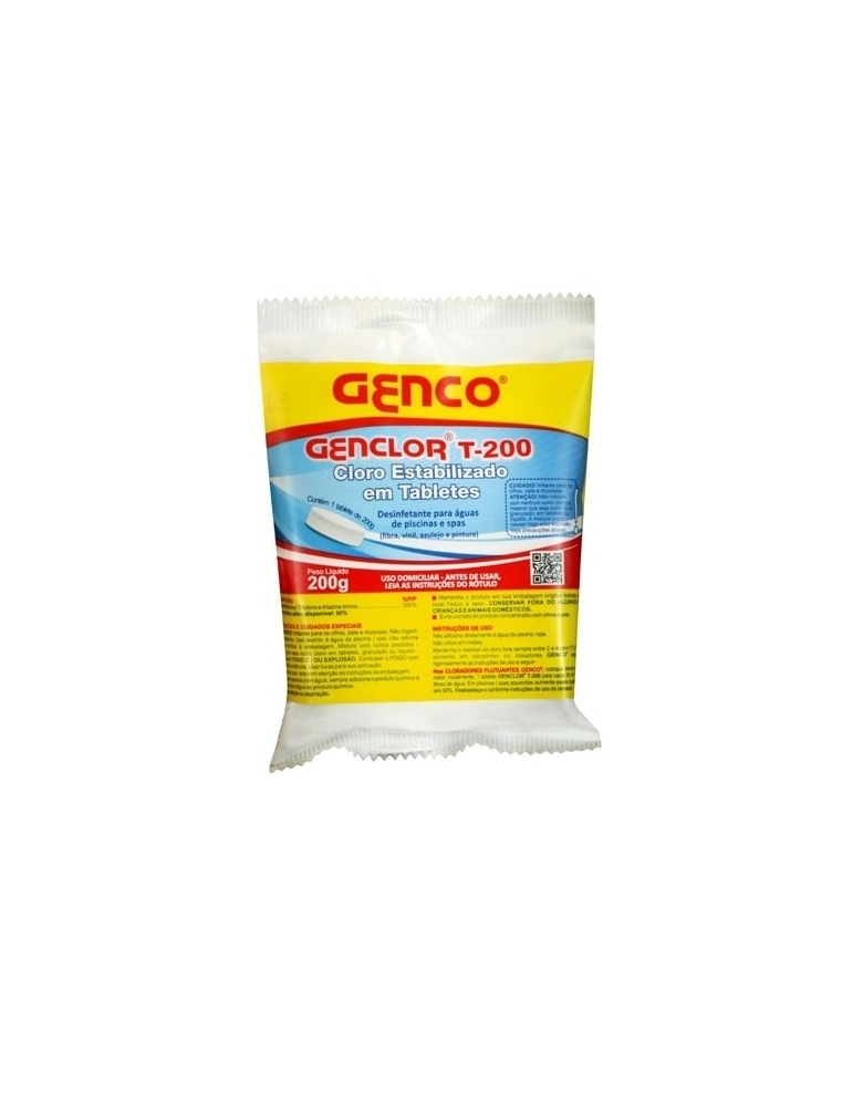 Tricloro em tabletes concentrado, contém 90% de cloro ativo. Possui estabilizante que inibe a degradação do cloro pelos raios UV (raios solares). GENCLOR® TABLETES CLORO ESTABILIZADO GENCO® apresenta dissolução lenta para cloração contínua e automática em cloradores ou dosadores automáticos por vários dias. Indicado para piscinas residenciais e institucionais.