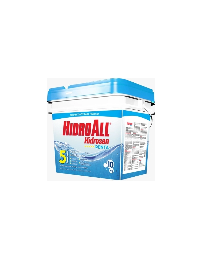 Hidrosan Penta é o Dicloro Orgânico aditivado com clarificante, algistático, estabilizador de pH e eliminador de matéria orgânica. Indicado para tratar qualquer tipo de piscina, Hidrosan Penta não reduz a alcalinidade e nem o pH da água. Por isso, piscinas tratadas com Hidrosan Penta permanecem com a água balanceada.