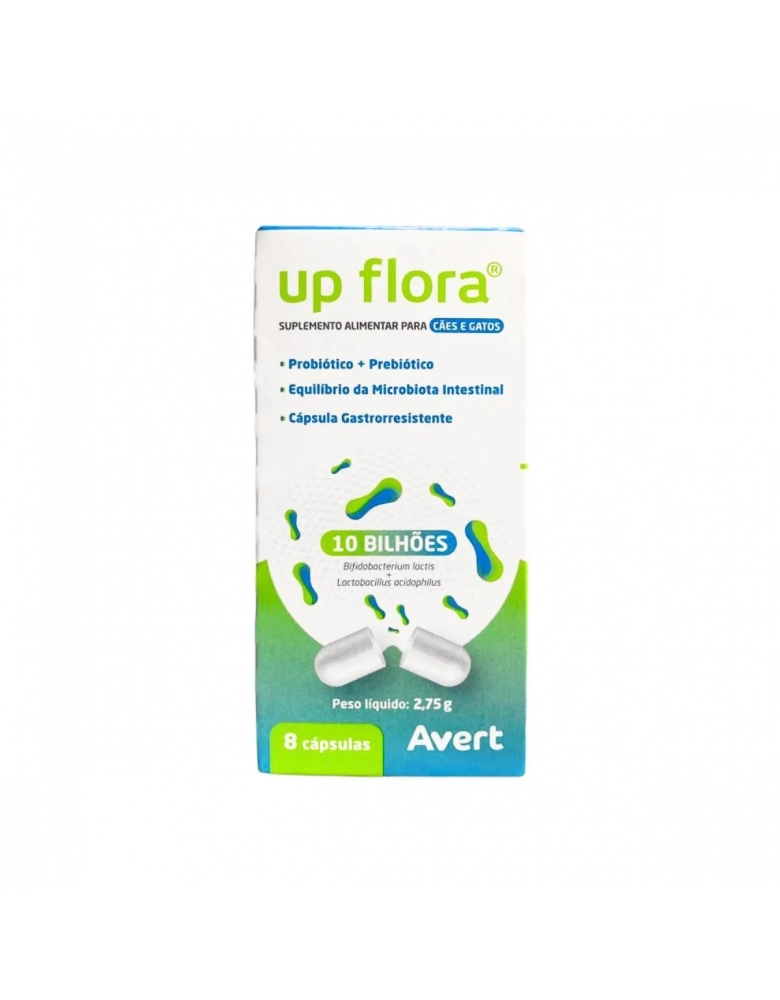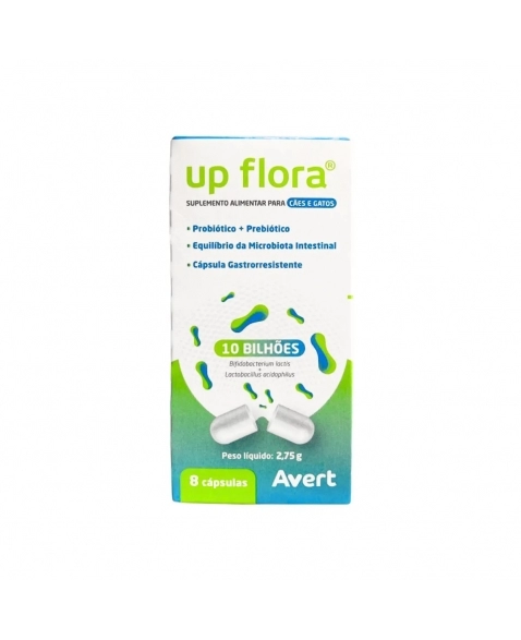 UP FLORA® é um suplemento alimentar composto por probiótico, prebiótico e zinco aminoácido quelato. Indicado para auxiliar no equilíbrio da microbiota intestinal de cães e gatos em suas diversas fases de desenvolvimento.