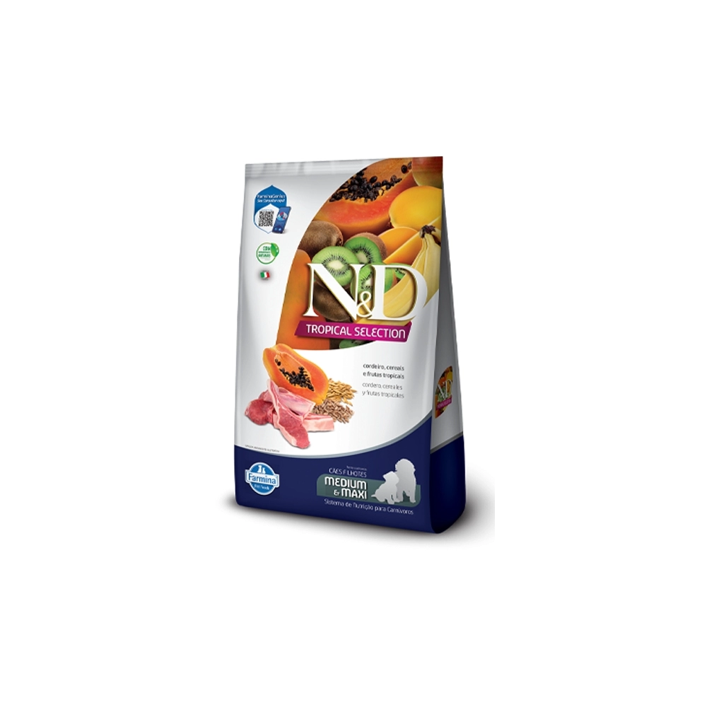 cordeiro (carne de ovino, farinha de carne e osso de ovino – mín. 3,5%), cereais e frutas (aveia, grãos de sorgo, cevada em grãos, banana desidratada, mamão desidratado, kiwi desidratado, manga desidratada – mín. 35%), farinha de vísceras de aves, farinha de torresmo, ovo em pó, quirera de arroz, farelo de trigo, farinha de peixe, óleo de frango, óleo de peixe, polpa de beterraba, levedura seca de cervejaria, cenoura desidratada, aditivos prebióticos (FOS e MOS), DL-metionina, taurina, L-carnitina, sulfato de condroitina, sulfato de glicosamina, aditivos adsorventes (extrato de yucca e zeolita), hidrolisado de fígado de aves e suínos, vitaminas (A, D3, E, B1, B2, B5, B6, B12, C, biotina, niacina, ácido fólico, cloreto de colina), cloreto de sódio, cloreto de potássio, ferro aminoácido quelato, cobre aminoácido quelato, zinco aminoácido quelato, manganês aminoácido quelato, proteinato de selênio, iodato de cálcio, propionato de cálcio, concentrado de tocoferóis.