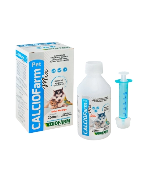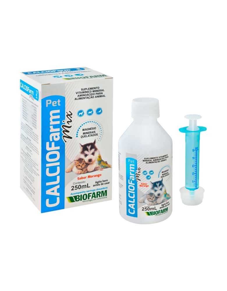 CALCIOFarm Mix Pet é um suplemento de vitaminas e minerais quelatados, indicado para cães, gatos, mustelídeos e aves na suplementação de cálcio, outros minerais e vitaminas.