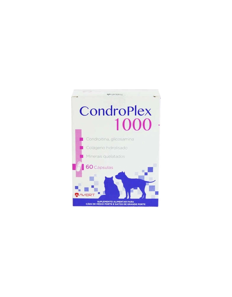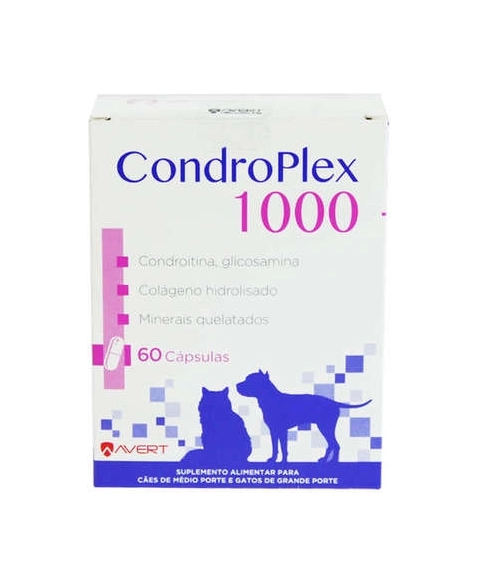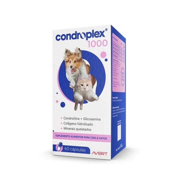 O Suplemento Alimentar CondroPlex 1000 para Cães e Gatos de Médio e Grande Porte é composto por nutrientes essenciais às articulações. Indicado para gatos e cães de médio e grande porte em qualquer idade, que se beneficiem do aporte desses nutrientes.
