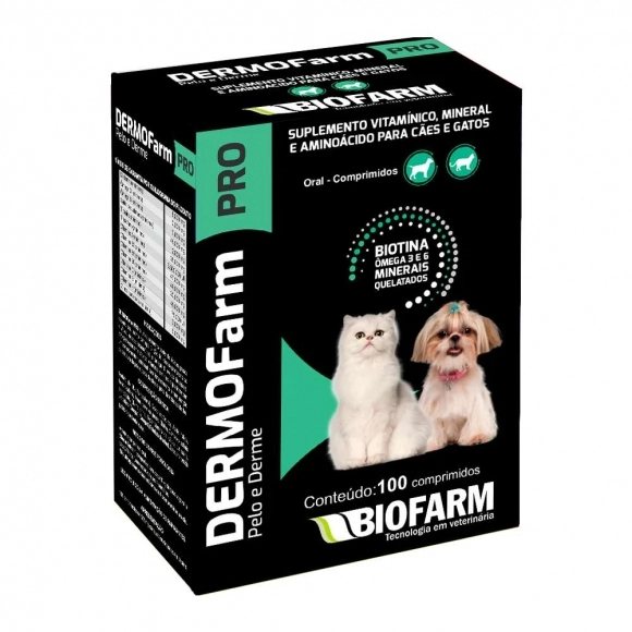 DERMOFarm PRO é um suplemento contendo ácidos graxos essenciais, como ômega 3 (Ácido eicosapentaenóico e Ácido docosahexaenóico) e ômega 6 (Ácido linoleico), reforçado com aminoácidos, vitaminas e minerais que fornecem um complemento nutricional para fortalecimento e manutenção da estrutura da pele e pelos de cães e gatos de todas as idades.